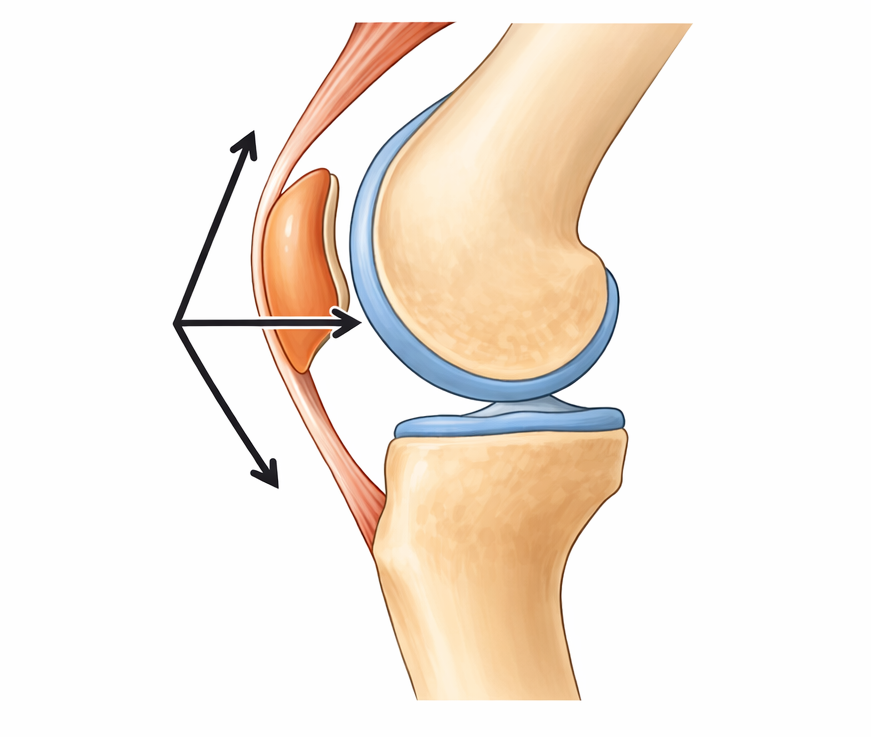 お皿(膝蓋骨)の骨にかかる力の模式図